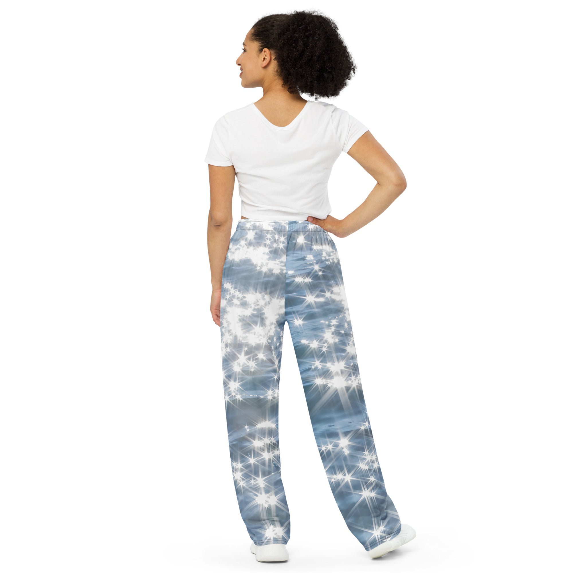 Now more than ever, loungewear occupies a large part of most people’s closets. Seamlessly merging fashion with function, the stretchy All-Over Print Unisex Wide-Leg Pants are a trendy base for any style, from cozy pajamas to a bold streetwear look.